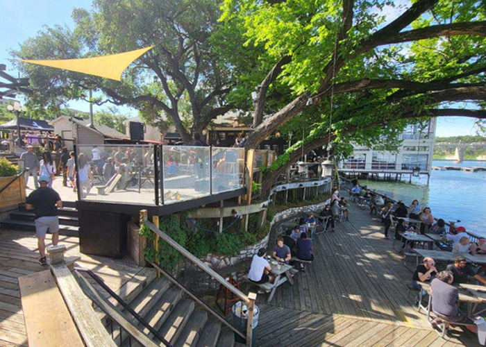 Multi-level decks stretch out along the edge of Lake Austin’s sparkling blue water, dotted with picnic tables and under the gracious cover of heritage oaks. Hand-painted signs greet visitors and welcome them into an oasis filled with the aroma of freshly brewed coffee and baked goods and made even sweeter by the sounds of live music, birds and community in fellowship.